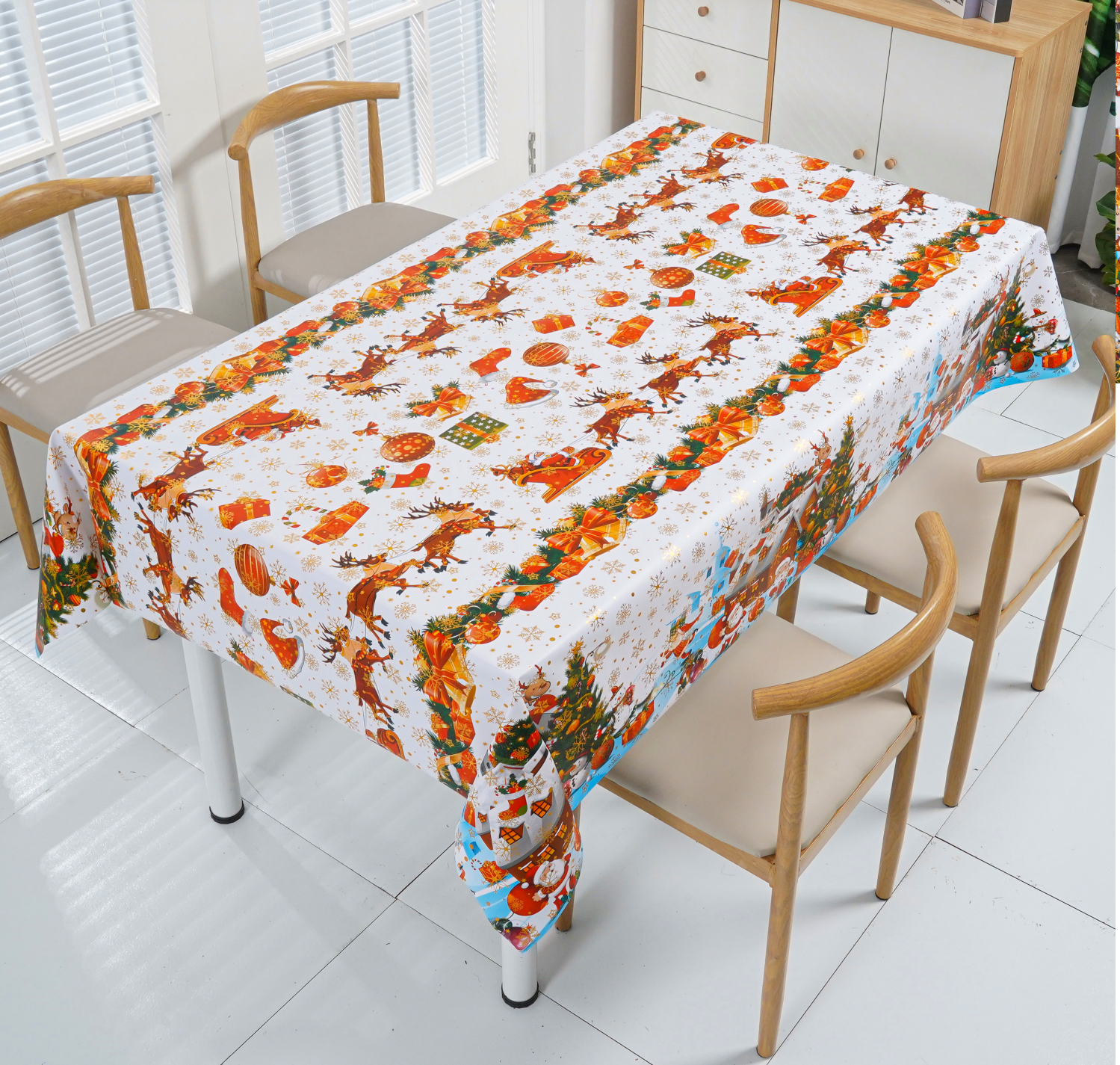 Przykład: dla blatu o wymiarach 100x140 cm, rekomendujemy obrus o rozmiarze 140x180 cm.